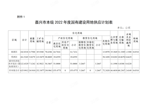 本次供地总体情况:供应总量625.9912公顷:其中商服用地24.9101公顷,占供应总量的3.98%;工矿仓储用地252.3877公顷,占供应总量的40.32%; 南湖区:共13宗涉宅用地,宗地面积约78.6公顷,主要位于湘家荡、二环主城、科技城槜李湖板块和余新。 秀洲区:共18宗涉宅用地,宗地面积约98.00公顷,主要位于秀洲国家高新区和各乡镇。 经开区:共13宗涉宅用地,宗地面积约54.35