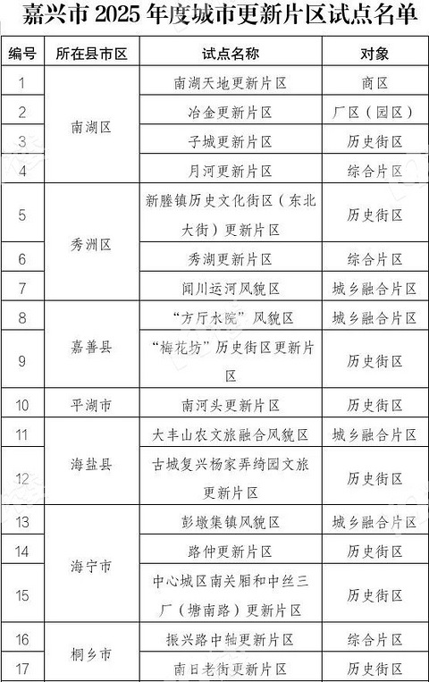 嘉兴1个城区、21个片区入选年度省级城市更新城区、片区试点名单