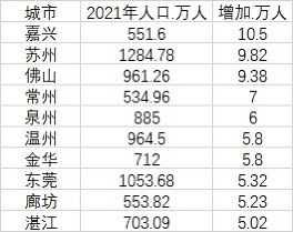 嘉兴成为2021年唯一人口增量超10万人的普通地级市