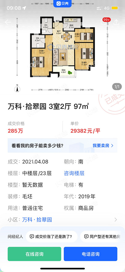 前几年,也是高位的时候买了一套房,不过还好后来涨上去了,以时间换上涨空间吧!那套房子整体都很满意,就是没有好的学区,以及小高层一梯一户,公摊面积很大,120个平方,公摊29平方。赠送面积大概12个,套内103平。三房,紧凑型!后来,又在高位时候,买了以下这个盘的高层。最近因为考虑小孩上学问题,要去住,把高层以2万一平卖了,换了同小区的洋房142平,大概2.25万不到点一平!当然,318万,这个价格