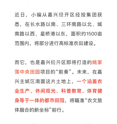 大意是:姚家荡南板块这部分原本就是永久基本农田与耕地,现在要建设高标准农田。那就是说原来姚家荡南规划的湖是没有了。