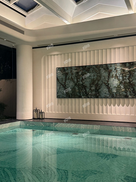 这个大豪宅你羡慕了吗?我来盲猜一个开盘价2.7~2.8w每平带精装修!约25米【碧海柔波】恒温泳池,化身“微缩钱塘”。顶部可开合天窗纳星月入怀,无界玻幕拥河入怀。池底马赛克砖铺陈粼粼波光。背景墙《潮影别梦》艺术挂画,漆画螺钿工艺勾连王国维“人生三境”哲思。