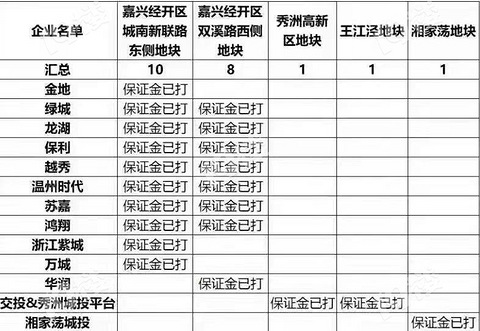 疑似嘉兴首次土拍报名表曝光!五块地都有开发商报名!
