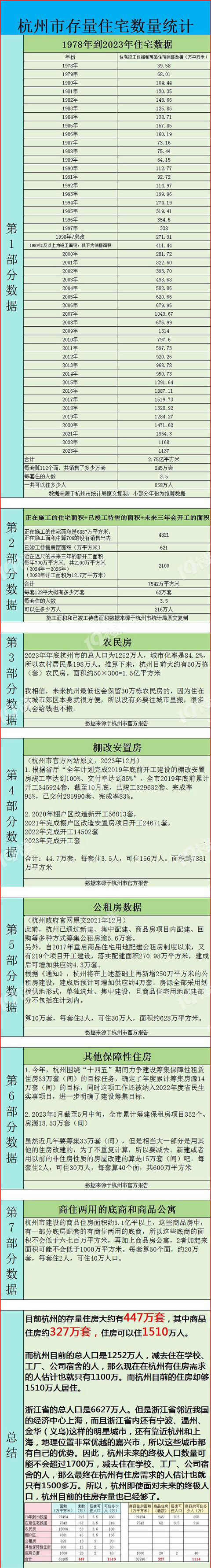 据可查来源的详细统计,目前杭州市的存量住房有447万套,可供1510万人居住,而杭州市目前的常住人口是1252万人,减去住在学校、工厂、公司、工地宿舍的人,那么现在在杭州有住房需求的人估计也就只有1100万。而杭州目前的住房却够1510万 人居住。 杭州市当下的住房已经出现了过剩。