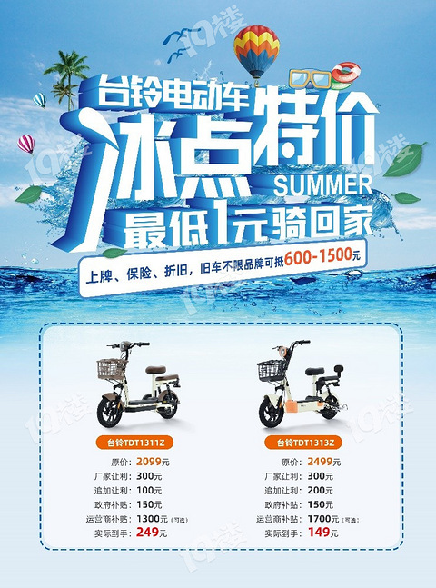 台铃电动车冰点特价,最低1元骑回家!