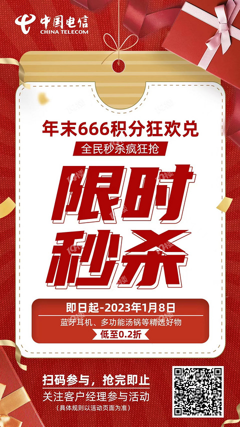 【电信用户福利】年末积分秒杀,小家电、褚老大送送送
