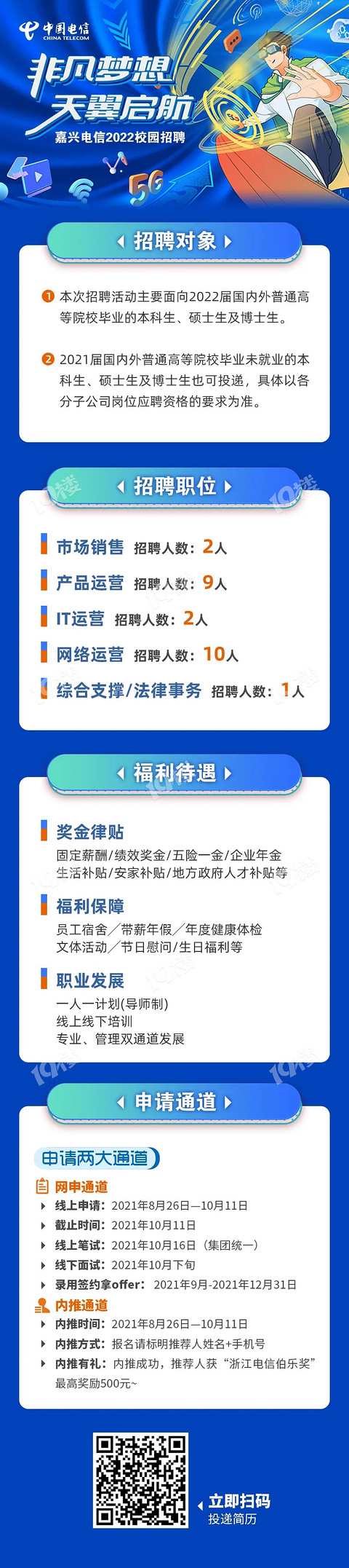 非凡梦想 天翼启航 ——嘉兴电信2022校园招聘来啦!