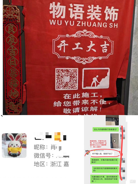 各位,尤其是新交付小区的业主注意了,务必擦亮眼睛,避开这家!!!目前其他小区业主也联系到我,表示被“物语装饰”坑惨了,请大家多多转发,避免更多的人被坑!她往往以验房和做房修志愿者的身份跑新交付小区接活,其他业主家出现施工问题她也是要业主加钱买单才肯干活,包括有个业主因为他们施工问题下水管被水泥堵住淹了阳台,她都不出面处理,还有业主反馈她所售窗户的有质量问题,但她要对方支付1500的吊装费才肯换,业