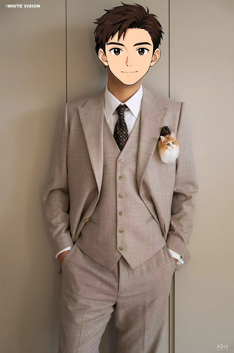 从面料到版型的精雕细琢,终在婚礼现场绽放极致魅力浅杏色西装三件套,搭配菱格纹领带与萌趣猫咪胸针,既hold住仪式感满满的红毯时刻,也适配中式外景的温婉氛围。从接亲的随性互动,到舞台上的郑重宣誓,每一个角度都把定制西装的合身与质感拉满~恭喜张先生和太太新婚快乐,愿这套定制西装,见证你们往后所有的美好时刻