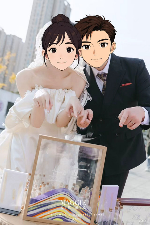 亲爱的[新郎]和[新娘]: 在这洋溢着幸福与甜蜜的日子里,恭喜你们喜结连理,步入婚姻的神圣殿堂! 看着照片中身着定制西服帅气笔挺的你,和身披洁白婚纱美丽动人的她,每一个细节都散发着爱情的美好与庄重。就如同这精心定制的西服,每一处剪裁都契合你的身形,你们的爱情也在时光中精准契合,完美交融。 愿你们的婚姻生活,如同定制西服的品质一般,始终精致且高品质。在未来的日子里,无论顺境还是逆境,都能相互陪伴、彼