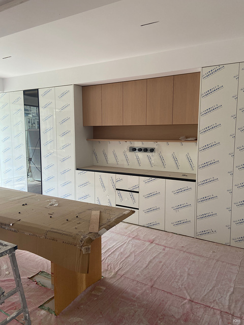等了大半个月的全屋定制终于安装好了,面板就是白色的不撕膜也能看个大概了。很喜欢白色和原木的搭配,不知道撕膜后的样子