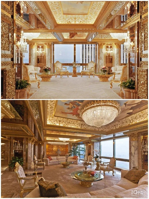 位于特朗普大厦顶层的大house(从大厦66层起的三层复式豪宅)这装修那叫一个富丽堂皇!
