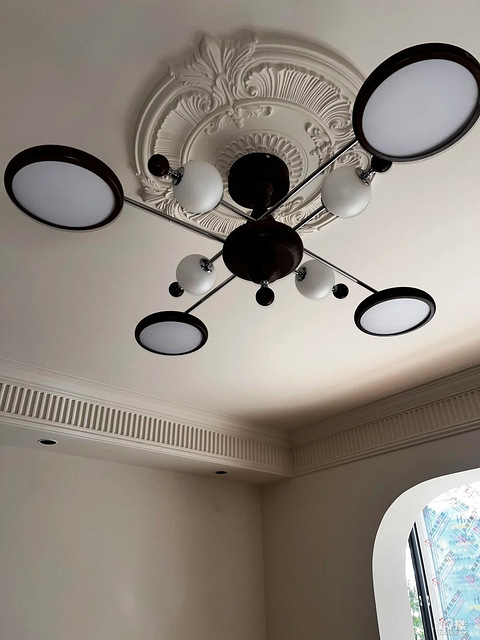 朋友家新房,我抬头一看这个灯盘配现代的灯,拿破仑大战外星人啊…