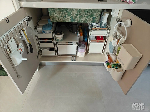 估计不少人刷到这种收纳都很心动,但我来打破一下,不要把常用的厨具调料放这下面,调料就不说了下面潮湿空气又不流通,真的不合适(密封的除外),常用的厨具就更是了,这个高度做挂钩,每次拿都要弯腰,反复来回,有这个挂钩,还不如挂台面的墙上呢...