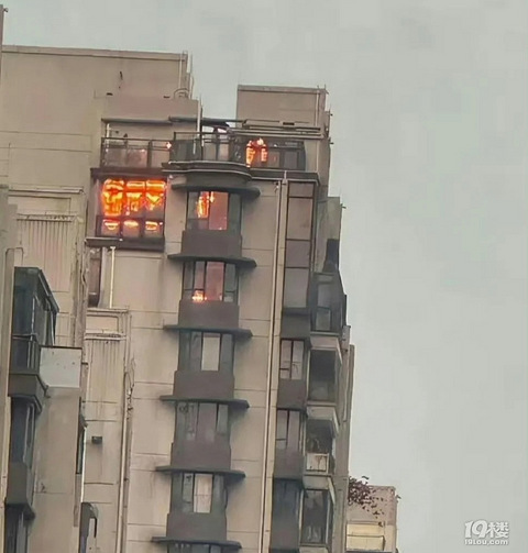对面栋邻居的灯装的,咋一看以为着火了呢