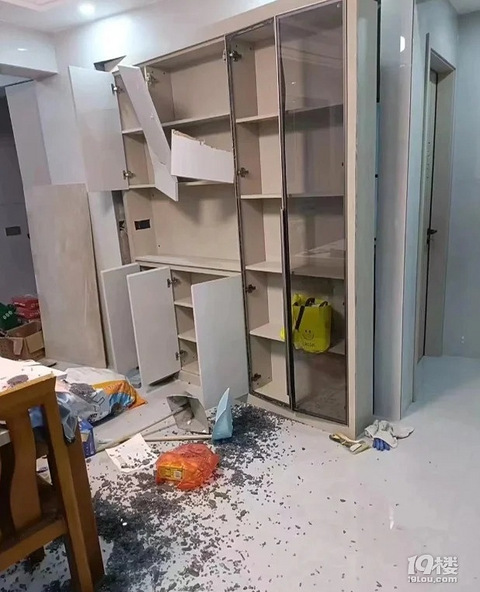 网上看到网友分享的,全屋定制柜子塌房的也是头一回见了。但凡两边有一颗螺丝钉都不至于...