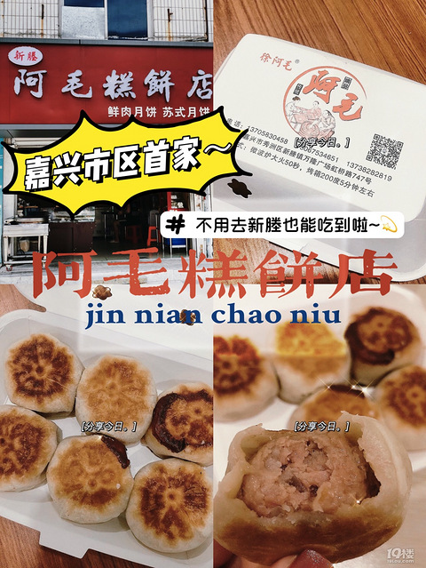 每次馋阿毛月饼~这次不用去大老远的新塍也可以吃到了 -店名:阿毛糕饼店地址:牡丹坊14号人均:4元/个 嘉兴市区首家阿毛月饼开业啦就在三水湾袄~- 一盒6个 24元/盒 以前都是找代购买 吃到的都是冷的这次现场吃了一个味道太赞了~ 里面的肉还有汤汁儿~ 真的太绝了吧快去买吧 马上中秋节了也可以买来给家里人恰恰