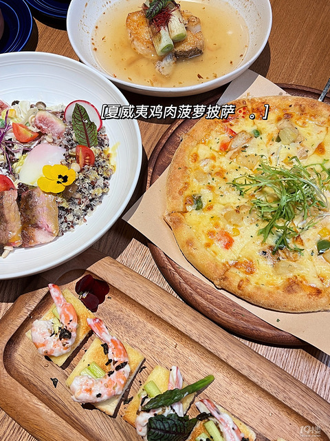 十二月份的节日真的太太太多啦发现好的赶紧来推荐给宝子们这家的氛围感和菜品我真的很意-店名:畔月西餐厅地址:新城街道秀洲大道嘉兴市文化艺术中心人均:70-80元停车:目前地下车库是免费的袄~-提前预定了位置店内的风格真的贼出片我们晚上去的 氛围感我贼爱如果下午去的话边上还有个咖啡馆就是南湖区的“solo”的分店 感觉很nice-夏威夷菠萝鸡肉披萨:这个新鲜出锅上桌真的是带着拉丝儿太绝绝子了 几种口味混合 味道很赞~ 夹着