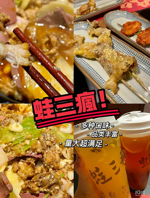 嘉兴第二家蛙三疯开业啦,牛蛙爱好者冲冲冲了我!◆最爱不二酸菜蛙!「巅峰销魂蛙」这款比较辣,不能吃辣的宝贝谨慎选择噢,我辣的呱呱叫「蒜香牛蛙」我的最爱,每块牛蛙都充满了蒜香,超级嫩又入味「不二酸菜蛙」这个汤汁真的是我能干3碗饭,里面还有乌冬面,滑溜溜的「咸蛋黄烤牛蛙」入口浓浓的咸蛋黄味,外酥里嫩,甜甜的带点点微辣,显得没有那么腻「椰汁流星丸子」里面一口咬开就有椰浆流出来,比较解辣