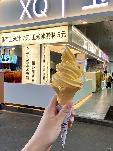 越秀集市这家新开的玉米汁店居然还有冰淇淋!有榴莲味和玉米味 买了一个玉米味的 意外的还不错 挺好吃的! 玉米汁不知道是不是我点的热的,时间放的有点久喝起来怪怪的,感觉像玉米泡水久了那种味道…喝起来是挺醇的