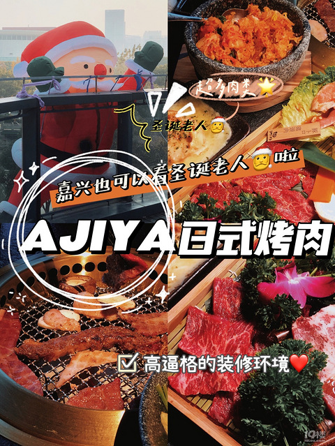 呀呀呀!!!魔都必吃榜来嘉兴啦 嘉兴烤肉界的天花板!温州商会顶楼惊现圣诞老人在嘉兴也可以感受到别的城市的快乐啦-店名:AJIYA地址:温州商会3楼(良库边上电梯上3楼)人均:200 环境真的很日式了!不愧是日本引进的 超级nice吖 12号正式开始试营业啦试营业期间某评收藏打卡还可以送冰激凌袄(偷偷告诉你们 冰激凌真的敲好吃)-试营业期间全场消费88折/充值消费金额达三倍可以免去今天的消费费用袄
