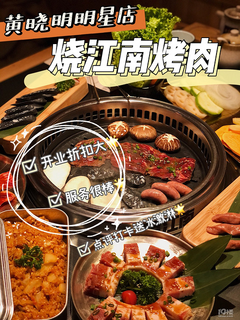 黄晓明的明星烤肉店来嘉兴啦~开业到店就送100元券!也太豪狠了吧~店名:烧江南烤肉地址:八佰伴中心点8楼(海底捞旁)人均:100 -他们家的肉质蛮好的但是贵也是真的贵的哈哈哈哈 好的肉质都要100到200一份袄店内的服务真是必须夸夸他服务员都很热情某评签到打卡还可以送冰激凌呢-店内的点餐是扫码点餐也很方便~ 临走店长还告诉我们26号正式开业期间会有5.8折的活动袄 -#嘉兴探店[话题]# #嘉兴美