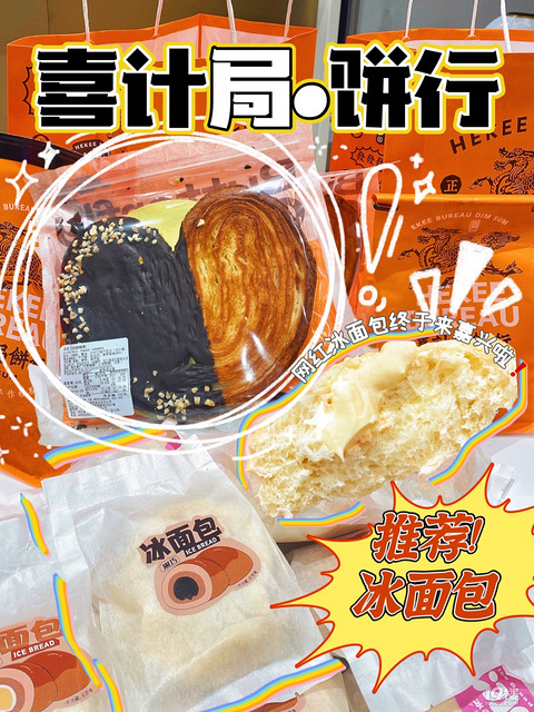 最近中式糕点一直深受大家的欢迎终于迎来了嘉兴首家「喜计局?6?1饼行」:南湖区广益路万达3F主打招牌「冰面包」软软的面包皮搭配冰淇淋口感的内陷~绝了这波羊毛我不允许你们还不知道原价12.8r/个,某音6.8r/个团购价一共九种口味,小孩子才做选择,我全要「经典原味冰面包」 「熔岩黑巧冰面包」「清新抹茶冰面包」 「馥郁蓝莓冰面包」「伯爵红茶冰面包」「盈袖香草冰面包」「想我了莓冰面包」「椰椰椰果冰面包