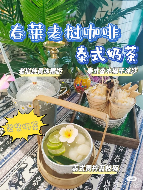 店名:春莱老挝咖啡地址:环城西路471号 泰式香水椰子冰沙椰子打的沙冰+椰子片+饼干第一口的冰沙,好冰冰凉凉的啊融化的冰沙,nice(浓浓的椰子口感)椰子片赞泰式青柠荔枝碗荔枝+青柠+冰一种搭配:感觉也挺清新老挝纯真冰椰奶(袋装奶茶)正常冰,真的好爽啊啊啊口感很好,装起也很牢固的。其他款奶茶or咖啡推荐:泰式手标绿奶茶、泰式手标红奶茶。还有其他的哦。—————————————————————环境一