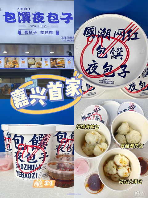 一直在抖音上刷到他们家终于嘉兴也有啦只有晚上营业的包子 简直是爱吃夜宵党的福利蹦完迪来一口热乎乎的包子吧-【具体信息】店名:包饌?6?1夜包子地址:中山东路八佰伴购物中心-【点单推荐】网红火锅包 15感觉吃包子 一口在吃火锅 第一次体验火锅味道的包子 配上他们家的蘸料 真的绝绝子 推荐一定要尝试-招牌麻辣包 15红油滋滋滋地往外冒 个人觉得没有特别的麻辣 (微辣的口感)但是真的很香-香菇酱香包 1