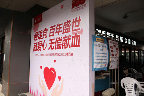 4月8日,在嘉兴建材陶瓷市场国际名品橱柜城楼下,大家为无偿献血作登记排起长队,采血车上护士正忙碌着。 嘉兴建材陶瓷市场党支部积极组织动员党员干部、商户党员、市场员工、各商家员工统一进行献血活动,为用实际行动迎接建党百年盛典,真正诠释大爱无疆、无私奉献的精神。据悉,本次无偿献血报名的有120多人,经过筛选,最终55人成功献血,共计献血16500cc。 一个多月前,得知嘉兴市血库全面告急,在商品交易产