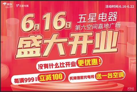 还有什么活动比开业更划算的呢?当然有啦!!!6月18号京东·五星电器新装震撼开业! 开业活动震撼无敌买电器还是到嘉地广场五星电器店 【开业特惠】 【门店环境展示】 活动这么优惠,是什么时间在哪里参与呢?当然是嘉兴嘉地广场3楼中厅时间是2023年6月18日联系电话:134-5639-1661