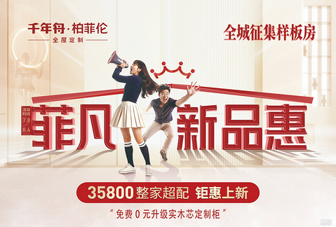千年舟免费征集样板房啦!还有0元升级实木芯定制柜~