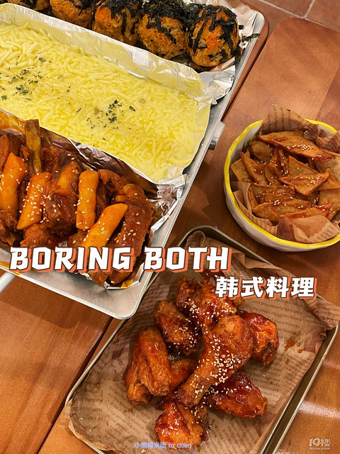 店名:BORING BOTH 韩式料理地址:八佰伴华府4F..芝士排骨锅排骨+芝士 +饭团这一个锅真的太爱了排骨上面绕着芝士饭团是海苔的,吃一个就有点饱了金枪鱼石锅拌饭酱我们要了独立的可以自己控制,自己拌好了,感觉食欲不错稍微有一点点辣,但口感赞赞赞星星秘制炸鸡喜欢吃炸鸡的冲冲冲炸鱼饼感觉还没有尝过,但也不反感。有一点点鱼的味道。 环境:韩式风格有一些地方拍照也是不错的。