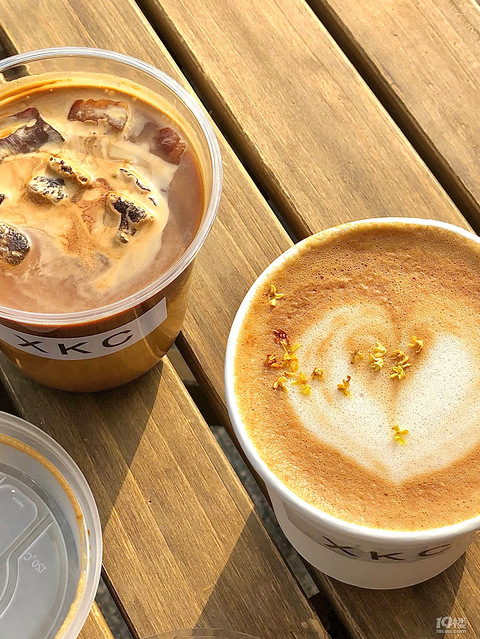 周三那天真的是近段时间天气最好的一天和姐妹约在XKC晒了个大太阳-整家店的布置很ins干干净净的很简约楼主要是咖啡制作区位置不多工作日人不多我们俩独享了门口的位置而且太阳大到完全睁不开眼整个被阳光包围的感觉就是幸福到犯困楼非常适合拍照位置也多一点-【桂花燕麦拿铁】一口把自己喝回了秋天桂花味儿巨浓郁本爱惨桂花选手深深沉迷了回味特像桂花糕的感觉还香香的我每喝一口都要在嘴里咂巴几下整体偏甜爱桂花的直接冲
