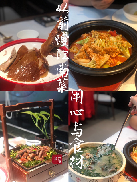 不得不夸一夸在振兴路上的这家苏浙菜餐厅环境:装修非常有江南韵味、民国时期的特色。一进门是乌篷船、二楼楼梯口仙气缭绕,里面是老式自行车摆放、还有乌镇邮局的招牌、收银处是人民银行没有拍(可惜)挂炉酥不腻烤鸭烤鸭肥而不腻鸭皮很酥脆,非常的好吃他们家的招牌,去晚了可能没有,所以最好提早预定。(两个人可以点半份)香煎雪花小牛肉牛肉香煎后鲜嫩多汁,还带有一丝丝麻。那丝麻是味蕾享受[得意]鸭架菜汤泡饭超级大的一