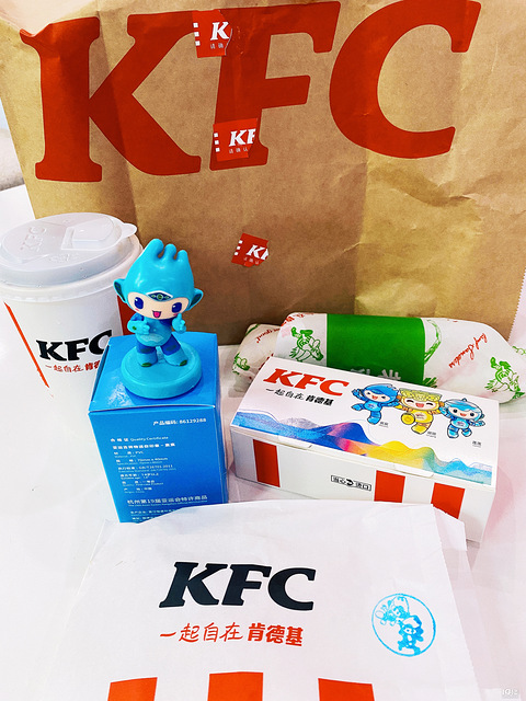 今天肯德基推出了亚运吉祥物联名印章套餐,香辣鸡腿堡或者老北京鸡肉卷+热辣香骨鸡+蛋挞+可乐+印章=46.9元。讲道理这价格不便宜,这套餐一个人吃有点多,两个人吃也不够,但是抵不住可爱三小只的魅力,本着感受下亚运氛围的心情,我点了。 印章是顶流三小只随机的,我收到的是宸宸。拥有吉祥物一定是个吉祥的好兆头,大家感兴趣的可以行动。