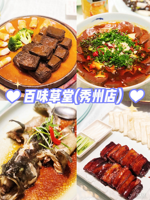 店名:百味草堂(秀洲店)地址:秀清路智富城A-4休闲广场 每次家庭聚餐 吃饭的好去处~ 各种菜系都~ 「竹荪秘制黑豆腐」第一次点 因为朋友要吃~里面竟然是芝麻!很特色味道还是不错的~-「锅巴番茄牛腩」锅巴脆脆的 好上口泡在番茄牛腩里面更加入味了-店内的菜品很多 服务员也很贴心可以提前预定包厢-