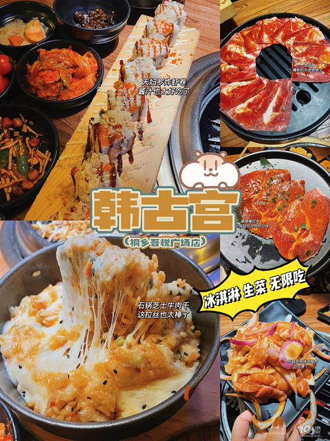 与小伙伴迷失在诺大的吾悦广场里这么冷的天气 当然要围着炭火吃一顿热气腾腾的烤肉-【具体信息】店名:韩古宫(桐乡吾悦广场店)地址:振兴东路桐乡新城吾悦广场3楼停车:千万不要停在两边 会吃罚单-【点单推荐】点评185套餐2-3人餐-天妇罗炸虾卷可能太饿了 上来的第一道菜 竟然觉得很好吃特别是芝士酱很浓 与米饭真是神仙搭配-石锅芝士牛肉饭会拉丝的芝士饭 超多芝士 但是牛肉真的少的可怜除了芝士 其他就显得