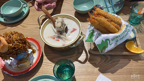 点了抖音3-4人阿耶招牌套餐,有几道菜没有拍照。迷你椰的出品开始很可以的,性价比也很高。招牌椰汁鸡汤,浓郁的椰汁搭配鸡肉,很东南亚的风味,好吃。炸虾够酥脆,虽然是冻品,但可以吃到虾肉。烧烤炸物拼盘,东西种类很多。味道都不踩雷,喜欢里面的鸡肉串。烤鸡翅搭配青柠,还有萝卜清口。越南鲜虾米纸卷,甜辣酱和越南当地吃的有点区别,风味还可以。香茅炸鱼,有一点点腥味,蘸上酱料很不错,酱料好评。菠萝蜜糯米粉,蓝色