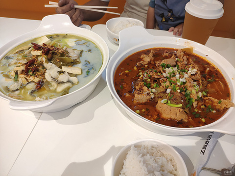 主打就是一个吃鱼,也有水煮肉片,小吃炸物。小孩子我们选了番茄味巴沙鱼,没有鱼刺,还有配菜,两个小朋友要一份单人也够了。老坛酸菜鱼,微辣吧,酸酸的很开胃,水煮肉片看着很辣,吃了也不太辣,反正都很下饭。米饭的话电饭锅新鲜烧的不限量,这个米很香糯好吃。牛肉串一般般不推荐。