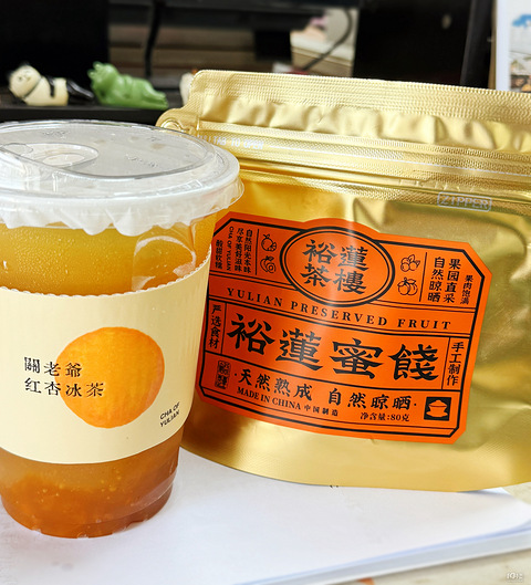 而是蜜饯! 之前只吃过裕莲茶楼的蛋挞,最近他家的红杏冰茶和冲浪鸳鸯很火,很爱吃杏的我立马点了。关老爷红杏冰茶和西域半熟黄金杏很配,比较清爽,酸酸的很开胃。 又买了自然熟成酸梅肉、整瓣黄金蜜桔干和多肉葡萄果粒梅,都挺好吃的,个人最喜欢蜜桔干(偏甜)。
