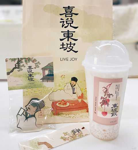 马上六一节了,奶茶届特别卷,奈雪的茶海绵宝宝、沪上阿姨大耳朵图图,而喜茶则是请来了苏东坡。 新品是东坡先生最爱的荔枝系列。跟小伙伴一起点了双杯套餐,袋子很好看,还送了限定书签和限定徽章,可以永远相信东方美学,国风太美了。