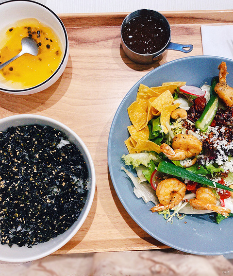 池奈日式咖喱蛋包饭已经吃过很多次了,每次都是吃经典的蛋包饭,这次去发现有海苔饭了,果断尝一尝。 每次吃蛋包饭套餐,从来没有吃完过,量太大了,这个海苔饭套餐看起来少一点健康一点。选了大虾沙拉,可以自己选要油醋汁还是沙拉酱。海苔脆脆的,饭里有一点点照烧汁。百香果冻很夏日,饮料可以自己无限续杯。整体来说,是比较清爽的。