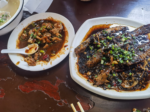 跑嘉善的日子,最开心的就是找吃的,嘉善当地人推荐的拉稀饭店,在自建房里,中午人真的很多,推荐了这个梅干菜昂刺鱼,真的很鲜很入味,青豆炒牛蛙还有个冬瓜汤!人均四五十,真的很不错