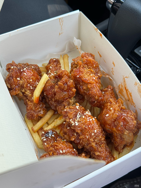 無生炸鸡朋友推荐的一家 吃了两次了口味确实不错 这次正好顺路去买了 还是刚炸出来的更好吃点了韩式辣酱、蜂蜜芥末、无骨双拼个人还是最喜欢韩式辣酱的 甜辣口味很好吃