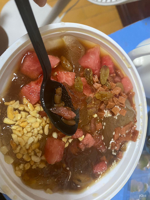 里面有红糖、花生碎、西瓜、葡萄干,冰冰凉凉,特别好吃