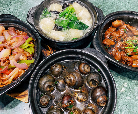 周末难得去趟海宁,就去吃阿龙酒煲了。生意是真的好,不仅有本地人,还有好多外地游客和粉丝(法老常吃的干饭店)来打卡,还好翻桌挺快的,我们排的不算久。 两个人看啥都想吃,一口气点了5个煲,其实量还可以的,2个人2-3个煲也够了。我们点了黄豆猪尾巴煲、大肠煲、宴球菠菜煲、田螺嵌肉煲、干锅八爪鱼煲,个人比较推荐前3个,后2个我觉得挺一般的。最近臭豆腐吃太多了,不然臭豆腐煲我肯定必点。