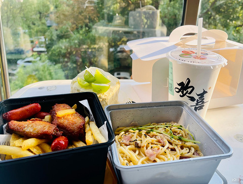 最近太阳不错本来想找家咖啡馆坐坐因为实在太懒,再加上大姨妈光顾点了【三月】的外卖和茉莉奶白的茉莉奶白在自家阳台上晒太阳,喝下午茶,门前的绿色也算还行还是很推荐的,最主要相对于其他咖啡馆的价位来说,它家真的算平价了奶油蘑菇意面,28,味道还可以小吃拼盘,30,送过来的时候薯条还是脆的,点赞最推荐的是他家的蛋糕,28,是真好吃我买了青提的小方,不甜,配奶茶绝了