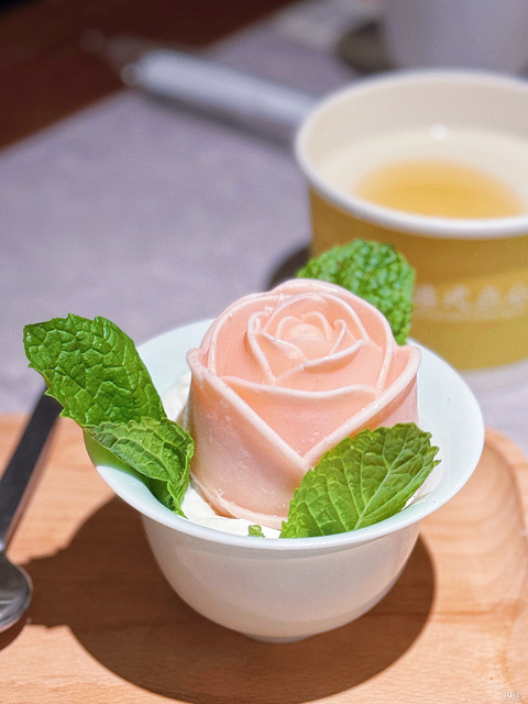 周末跟家人去吃蔡澜,发现上了一波新菜,世界读书日的活动,吃芝士新品长知识。 经典的菜品都吃过了,就试试新品。玫瑰芝士杯,重在颜值,长得非常好看,口味嘛,我只能说冰淇淋硬的舀都舀不动。避风塘雪花牛肉饺,是炸的,不太符合我的口味。金汤碗仔翅,有点像酸菜鱼的味道,挺好喝的,开胃。