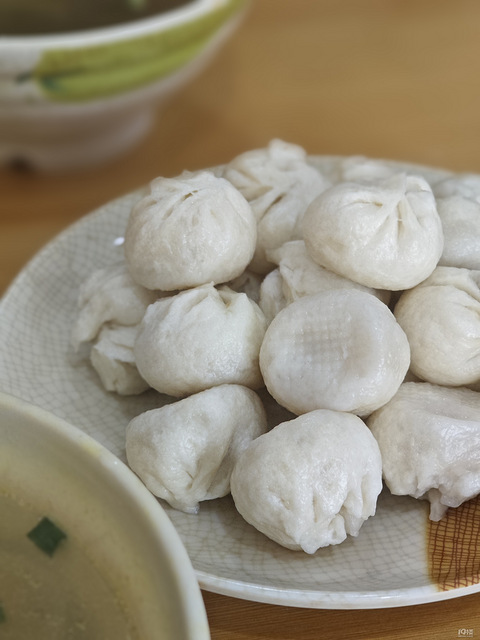 青少年宫门口的早餐店,早上学生在这边吃早饭的特别多,错过这个高峰期就没几个人了。营业时间好像也不固定,早上一定开门,但有时中午就关了。招牌松毛汤包,肉质鲜嫩,就是个太小了,一口一个。配上一碗粉丝汤或者小馄饨,冬天早上来一份暖暖的。